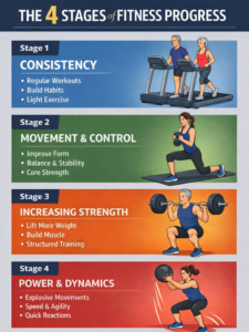 When these stages are followed in order, exercise becomes safer, more effective, and more sustainable—at any age.